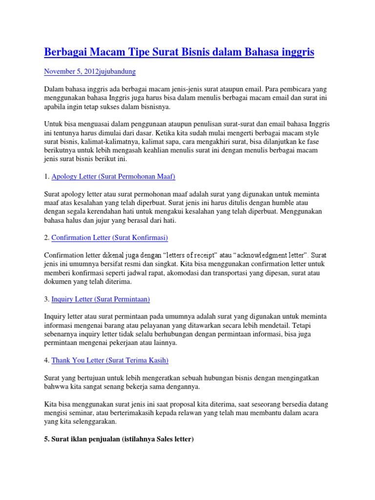 Jenis jenis surat bisnis