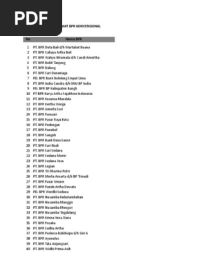 Bpr kredit mandiri indonesia. BPR Kredit Mandiri Indonesia adalah sebuah lembaga keuangan yang berdiri sejak tahun 2007 dan terfokus untuk menghimpun dana dari masyarakat dalam bentuk deposito dan tabungan, serta menyalurkan... Dody resmi menjabat sebagai Deputi Gubernur Bank Indonesia pada tanggal 18 April 2018 sesuai dengan keputusan Presiden Republik Indonesia Nomor 69/P Tahun 2018 tanggal 13 April 2018, dan dilantik sebagai Anggota Dewan Komisioner OJK ex-officio dari Bank Indonesia oleh Ketua Mahkamah Agung pada tanggal 25 September 2019. Mohon untuk diketahui bahwa PT BPR Kredit Mandiri Indonesia tidak pernah meminta uang atau pembayaran apa pun dari pelamar kerja selama proses rekrutmen. Semua orang yang menerima tawaran kerja dari PT BPR Kredit Mandiri Indonesia , baik secara langsung ataupun tidak langsung, selalu diwajibkan untuk melewati proses rekrutmen resmi. Palm Kartika Resort9-10 September 2017Participant:1. Cabang Citeureup2. Cabang Bogor3. Kas Sindang Barang4. Kas Cibucil5. HO Tambun6. HO BSD7. Cabang BSD8. C...