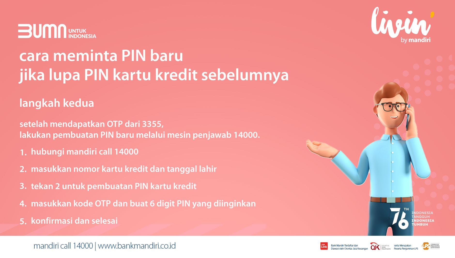 Cara Buat Pin Kartu Kredit Bank Mandiri Bila Lupa atau... - Kartu Bank Lupa pin kartu kredit mandiri mu? Tidak perlu khawatir karena membuat pin yang baru cukup mudah. Cara ini juga bisa kamu ikuti, bila kamu belum pernah menerima PIN. Digunakan untuk apa saja pin kartu kredit mandiri? Digunakan untuk belanja di toko fisik dan untuk transaksi di mesin ATM.