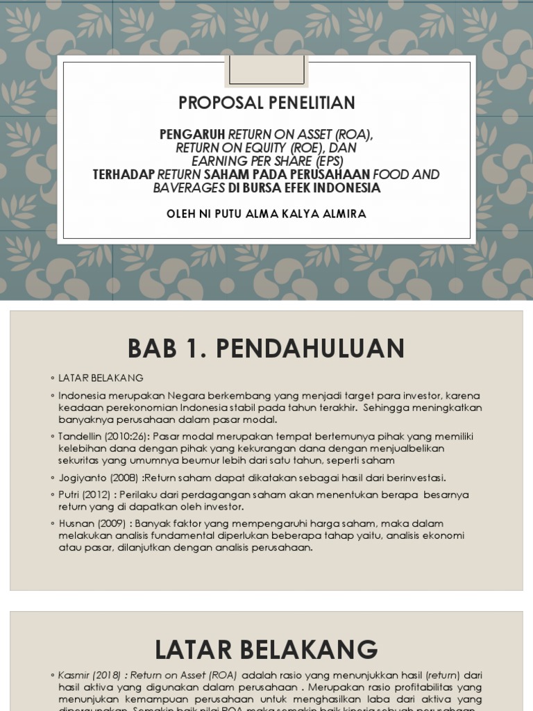 Analisis pengaruh roa, roe, dan eps terhadap return saham Recommend Stories. Pengaruh EPS terhadap Return Saham. Analisis Pengaruh Kinerja Keuangan Terhadap Return Saham. Pengaruh ROA terhadap tingkat harga saham.