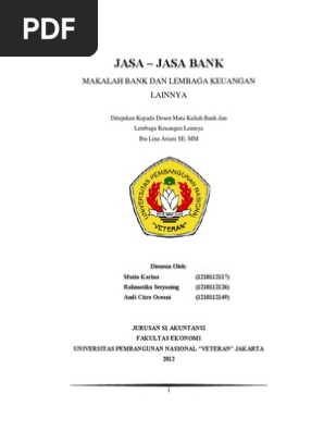 12 Jenis-jenis jasa bank Berikut adalah beberapa jenis jasa-jasa bank lainnya : 1. Kiriman Uang (Transfer) Transfer adalah merupakan jasa pengiriman uang baik di dalam negari ataupun luar negeri. Sebagai contoh Rita mengirim uang kepada ayahnya sebesar Rp 5.000.000 melalui "bank R" melalui jasa transfer. 2. makalah jasa-jasa bank - Blogger Namun disamping keuntungan dari kegiatan pokok tersebut pihak perbankan juga dapat memperoleh keuntungan dari transaksi yang diberikannya dalam jasa-jasa bank lainnya. Keuntungan dari transaksi dalam jasa-jasa bank ini disebut juga fee based. Adapun keuntungan yang diperoleh dari jasa-jasa bank ini antara lain : Adapun keuntungan yang diperoleh dari jasa jasa bank ini ... Adapun keuntungan yang diperoleh dari jasa-jasa bank ini antara lain: a. Biaya administrasi Biaya administrasi dikenakan untuk jasa-jasa yang memerlukan administrasi khusus. Biayaadministrasi biasanya dikenakan untuk pengelolaan sesuatu fasilitas tertentu. Contoh biaya administrasi seperti biaya administrasi kredit dan administrasi lainnya. b.