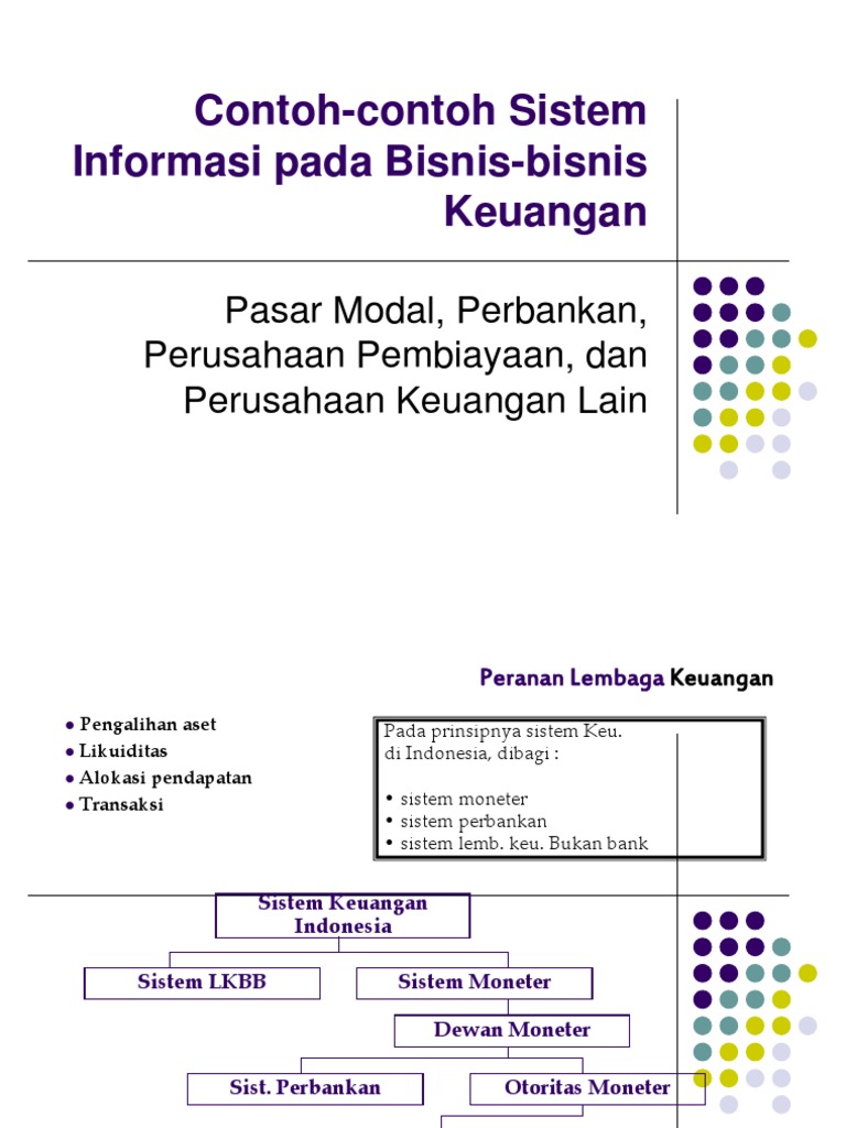 Contoh sistem informasi dalam bisnis. 12 Contoh Sistem Informasi Manajemen dan Aplikasi... - Materi Dosen Dalam prakteknya Sistem Informasi Manajemen diterapkan dalam berbagai bidang seperti akuntansi, akademik, pemasaran, manajemen persediaan, personalia dan lain sebagainya. Namun pada kesempatan kali ini kita hanya akan menjelaskan 12 contoh penerapannya saja, Berikut 12 contoh... (doc) konsep dasar sistem informasi dalam bisnis Peran utama Sistem informasi dalam bisnis diantaranya: 1. Mendukung Operasi Bisnis Mulai dari akuntansi sampai dengan penelusuran pesanan pelanggan, sistem informasi menyediakan dukungan bagi manajemen dalam operasiatau kegiatan bisnis sehari-hari. Ketika tanggapan/respon yang cepat... PDF Data dan informasi dalam sistem informasi bisnis — Kebanyakan model dengan bahasa matematika. Data dan Informasi Dalam Sistem Informasi Bisnis. Pengenalan sistem informasi. 1. Mengenali adanya elemen sistem pengolahan data à hardware Contoh : Sistem Informasi di Apotik. Hasil survey : 1.Data 2.Informasi 3.Pengetahuan. Contoh makalah sistem informasi, organisasi dan... BAB I. PENDAHULUAN. A. Latar Belakang. Perubahan lingkungan bisnis yang semakin tidak menentu dan situasi bisnis yang semakin kompetitif menimbulkan persaingan yg semakin tajam, ini ditandai dengan semakin banyaknya perusahaan milik pemerintah maupun swasta yg didirikan...