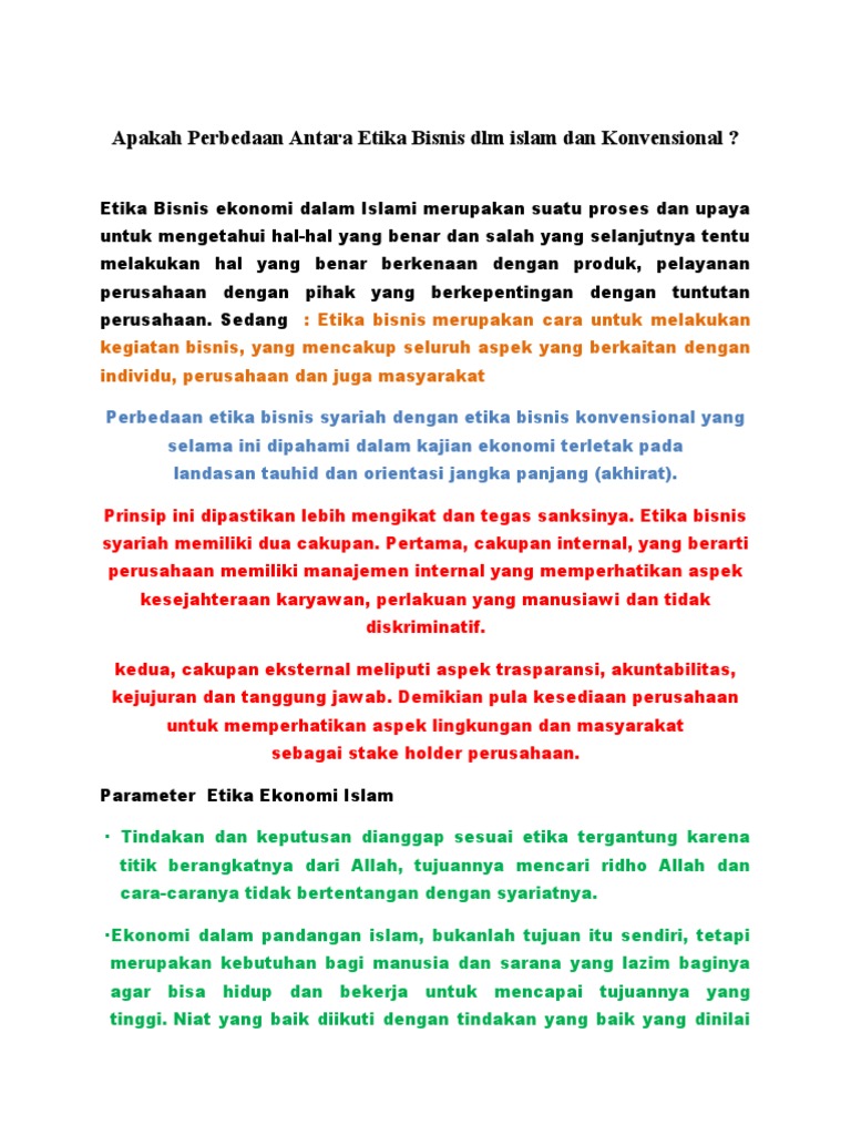 (PDF) Bisnis Dalam Perspektif Islam (Telaah Konsep ... Islamic business must be based on Islamic ethics derived from the Qur'an and the Sunnah of the Prophet Muhammad. Generally, business ethics is a normative discipline, whereby particular ethical...