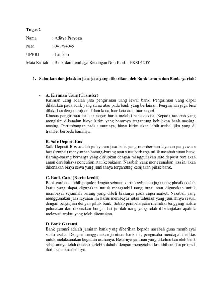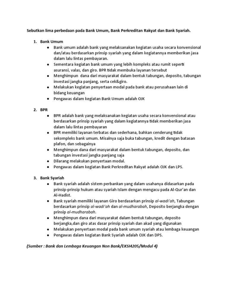 39 Sebutkan Kegiatan Usaha Bank Syariah - Info Investasi Emas studyassistant-id.com › ekonomi › tugas13841601Sebutkan kegiatan usaha bank syariah - studyassistant-id.com Sep 04, 2016 · Sebutkan kegiatan usaha bank syariah... Ekonomi, 14.06.2020 06:12, anonymous5488. Sebutkan kegiatan usaha bank syariah. Jawaban: 1 Buka kunci jawaban ... Billig Dinkelsbühl (Bavaria) Ulama sepakat (ijma8217) bahwa akad al-scharf disyariatkan dengan syarat-syarat tertentu. Memperhatikan: 1. Surat dari pimpinah Einheit Usaha Syariah Bank BNI-Nr. UUS2878 2. Pendapat Peserta Rapat Pleno Dewan Syari8217ah Nasional pada Hari Kamis, Tanggal 14 Muharram 1423H 28 Maret 2002. MEMUTUSKAN Dewan Syari8217ah Nasional Menetapkan. 5 Perbedaan Bank Syariah dan Bank Konvensional, Kenali ... Perbedaan bank syariah dan bank konvensional selanjutnya berasal dari sistem pembagian bunga atau keuntungan. Seperti diketahui, bank konvensional melakukan berbagai kegiatan dengan berbasis bunga, sedangkan bank syariah tidak mengenal bunga melainkan lebih menerapkan prinsip untung dan rugi. √ Bank Syariah: Pengertian, Sejarah, Ciri, Jenis, Produk ... Bank Umum Syariah adalah suatu jenis bank syariah yang kegiatan usahanya menyediakan jasa lalu lintas pembayaran. Contohnya: PT Bank BNI Syariah, PT Bank Syariah Mandiri, PT Bank BRI Syariah, PT Bank Muamalat Indonesia, dan lain sebagainya. 2. Unit Usaha Syariah