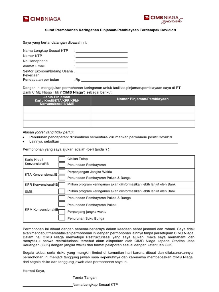 Bunga cicilan kartu kredit cimb niaga. Review 12 Kartu Kredit CIMB Niaga Terbaik (Bunga, Limit ... Ada promo kartu kredit berupa bonus voucher belanja Rp. 1.000.000 dengan transaksi ritel minimal Rp. 15.000.000 dalam 2 periode cetak tagihan dan cicilan dengan bunga 0% untuk tenor 3 bulan berlaku untuk minimum transaksi Rp. 500.000. Keunggulan Menarik Kartu Kredit CIMB Niaga ... Cicilan Tetap Cicilan tetap yang ditawarkan oleh CIMB Niaga memiliki tenor 3, 6, dan 12 bulan dan disertai dengan bunga yang ringan. Per Juni 2017, suku bungan kartu kredit CIMB Niaga turun dari 2,95% menjadi 2,25% seiring dengan ketentuan yang diberlakukan oleh Bank Indonesia mengenai batasan suku bunga kredit. 3. Poin Xtra Pengajuan Program Keringanan Pembiayaan ... - CIMB Niaga Program Spesial Covid-19 Kartu Kredit Konvensional / iB: Cicilan Tetap. Nasabah diberi kemudahan untuk mengubah outstanding/pokok pinjaman menjadi cicilan dalam kurun waktu yang ditentukan oleh Bank. Program Spesial Covid-19 Kredit Tanpa Agunan (KTA) Konvensional / Personal Loan / KTA iB : Perpanjangan jangka waktu. Program Diskon Pelunasan Tagihan Kartu Kredit Bank CIMB ... Dari akhir bulan Februari, ada staf lapangan kartu kredit Bank CIMB Niaga yang menawarkan program keringanan pelunasan diskon 50% untuk pelunasan dan penutupan kartu kredit saya. Saya setuju dan akan menyiapkan dananya. Namun sampai pertengahan bulan Maret, belum ada kabar juga.
