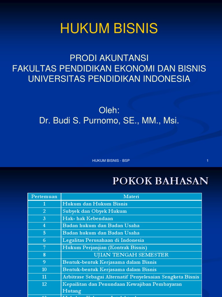 Hukum Bisnis Opencourseware Universitas Pembangunan Jaya MAN107 - Hukum Bisnis Prodi Manajemen Semester Ganjil 2015 No File Download; 1 : MAN107_slide_01 : PDF (876 KB) 2 : MAN107_slide_02 : PDF (1 MB) 3