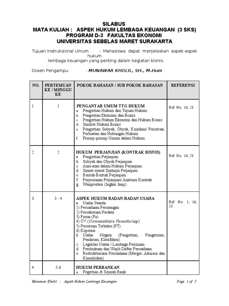 PDF HUKUM BISNIS DAN REGULASI - eprints.unpam.ac.id Semester : 2 Deskripsi Mata Kuliah : Mata kuliah Hukum Bisnis dan Regulasi merupaka mata ... B. URAIAN MATERI 1. Keberadaan Hukum Dalam Masyarakat ... Hukum Bisnis dan Regulasi 2 Walaupun definisi dari sarjana-sarjana atau ahli tersebut berlainan, akan tetapi pada dasarnya isinya sama yaitu masyarakat yang mencakup beberapa PDF Rencana Pembelajaran Semester (Rps) Program Studi ... kunjungan ke kantor-kantor hukum. Materi Pemebelajaran/Pokok Bahasan 1. Mengenal hukum bisnis 2. Badan hukum yang berlaku di Indonesia 3. Legalitas perusahaan 4. Lembaga Pembiayaan 5. Bentuk-bentuk kerjasama dalam kegiatan bisnis 6. Perlindungan Konsumen 7. Hak atas kekayaan intelektual 8. Aspek pajak dalam kegiatan bisnis 9. MATERI KULIAH SEMESTER 2 - Prodi Ekonomi Pembangunan Di Universitas Trunojoyo Madura, matakuliah yang ditempuh di semester 2 adalah sebagai berikut : Pancasila & Kewarganegaraan Teori Ekonomi Makro I Teori Ekonomi Mikro I Sosiologi Kritis Sejarah Pemikiran Ekonomi Pengantar Manajemen & Bisnis Matematika Ekonomi II Statistik I Dan beberapa dari materi kuliah tersebut telah saya upload dan bisa di unduh di link yang… Materi Ringkasan Aspek Hukum Dalam Bisnis Semester 4 ... Materi II - Pengantar Umum Tentang Hukum Perbankan unduh materinya DISINI Materi III - Merger Akuisisi & Likuidasi unduh materinya DISINI Materi IV - Hukum Tentang Rahasia Bank unduh materinya DISINI Materi V - Aspek Hukum Lembaga Penjamin Simpanan unduh materinya DISINI Materi V - Hukum Perjanjian (Kontrak Bisnis) unduh materinya DISINI